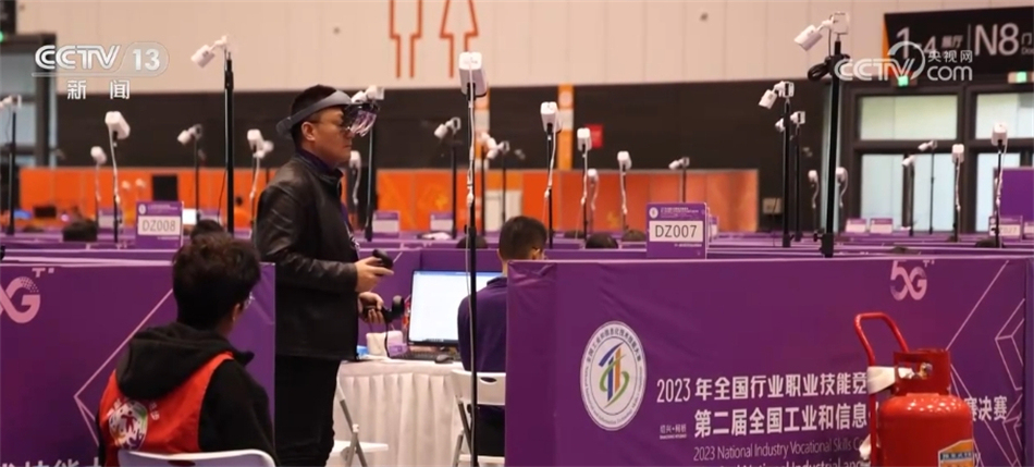 總臺央視記者 張叢婧:我身旁這一個個小隔間就是選手的比賽工位,可以看到有不同顏色,代表著四個賽項,分別是工業(yè)互聯(lián)網(wǎng)安全、汽車芯片開發(fā)應用、工業(yè)大數(shù)據(jù)算法、5G+虛擬現(xiàn)實開發(fā)應用。除了工業(yè)大數(shù)據(jù)算法這一項,其他三個賽項都是今年新設立的。