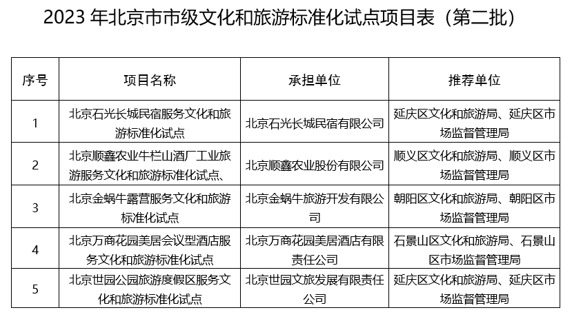 2023年北京市市級文化和旅游標(biāo)準(zhǔn)化試點(diǎn)項(xiàng)目表(第二批):