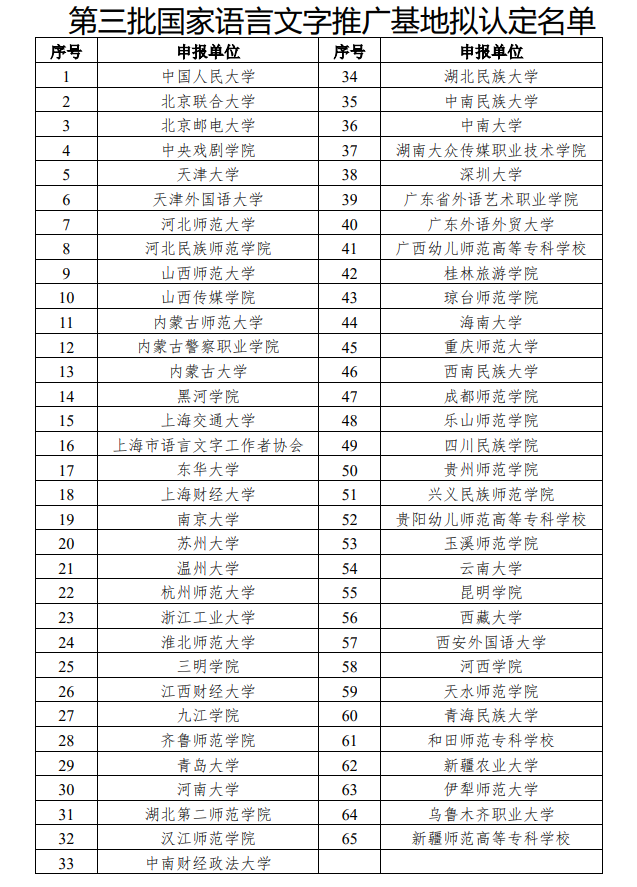 第三批國家語言文字推廣基地?cái)M定名單(圖源:教育部官網(wǎng))