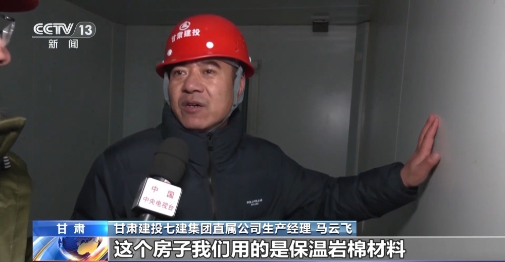 甘肅建投七建集團(tuán)直屬公司生產(chǎn)經(jīng)理 馬云飛:這個(gè)房子的面積是18個(gè)平方,3米乘6米,能住4到6個(gè)人。 房子我們用的是保溫巖棉材料,屬于A級(jí)防火等級(jí)的材料。 取暖問題考慮用電暖氣。 我們下一步考慮也要把水引進(jìn)來,包括電。老百姓只要進(jìn)來打掃打掃房間,完全可以達(dá)到入住條件。