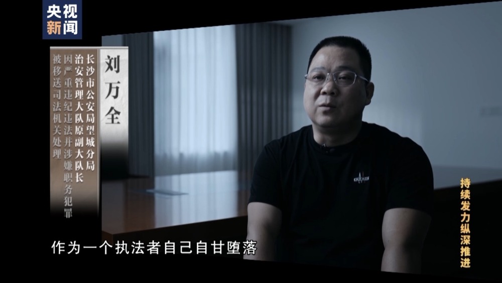 長(zhǎng)沙市公安局望城分局治安管理大隊(duì)原副大隊(duì)長(zhǎng) 劉萬全:總共送了兩萬三還是兩萬五千塊錢。作為一個(gè)執(zhí)法者,自己自甘墮落,為了這些蠅頭小利,貪小利貪小便宜,沒有守住紀(jì)律的、法律的底線。
