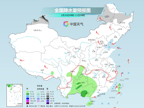今天南方陰雨天氣持續(xù),明天降雨區(qū)域?qū)⒖s減到西南一帶,北方則多晴朗干燥天氣,新疆北部仍需警惕強(qiáng)降雪。