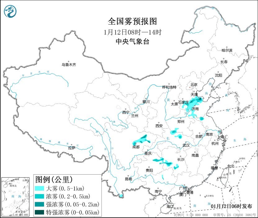 央視網(wǎng)消息:中央氣象臺(tái)1月12日06時(shí)繼續(xù)發(fā)布大霧黃色預(yù)警:預(yù)計(jì),1月12日的早晨至上午時(shí)段,河北南部、山東北部和西部、湖北北部、四川盆地北部、湖南西部、貴州東部等地的部分地區(qū)有大霧天氣,其中山東西北部、四川盆地北部、湖北北部、湖南西部、貴州東北部等地的部分地區(qū)有能見(jiàn)度不足500米的濃霧,局地有能見(jiàn)度不足200米的強(qiáng)濃霧。