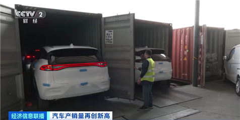 總臺(tái)央視記者 寧坤:在廣東深圳一處物流基地的前置倉,一批國產(chǎn)新能源汽車陸續(xù)裝入集裝箱,隨后將通過附近的蛇口港片區(qū)裝船出口發(fā)往東南亞國家。據(jù)了解,這是這家物流公司今年開年以后汽車出口業(yè)務(wù)的第一單。而在剛剛過去的2023年,由于汽車出口業(yè)務(wù)量猛增,他們?cè)谶@里的倉庫面積短短一年間就擴(kuò)大了3倍。