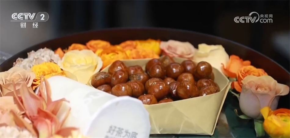 一些商家也是緊跟潮流,順勢(shì)推出“入冬四件套”禮盒。這家花店把鮮花、奶茶、糖葫蘆、糖炒栗子組合起來(lái)售賣(mài),受到許多消費(fèi)者的歡迎。