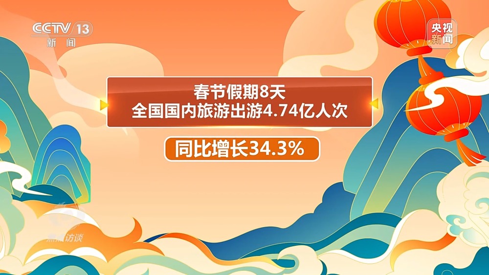 春節(jié)假期,全國上下洋溢著喜氣洋洋、紅紅火火的節(jié)日氣氛。農(nóng)歷正月初一至初八,電影總票房突破80億元,創(chuàng)中國影史春節(jié)檔票房紀(jì)錄;春節(jié)假期8天全國國內(nèi)旅游出游4.74億人次,同比增長34.3%;臘月二十三以來,全國重點(diǎn)商圈的客流總量同比增長超70%;春節(jié)前后,超500萬條打卡傳統(tǒng)文化的內(nèi)容在社交平臺(tái)上掀起熱潮。