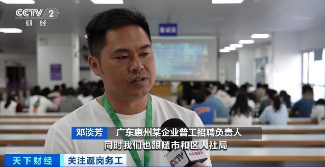 廣東惠州某企業(yè)普工招聘負(fù)責(zé)人 鄧淡芳:我們企業(yè)在初四就已經(jīng)開始正常招聘了,同時我們也跟隨市和區(qū)人社局,在初七的時候就開始走出去了,去了云南、湖南。