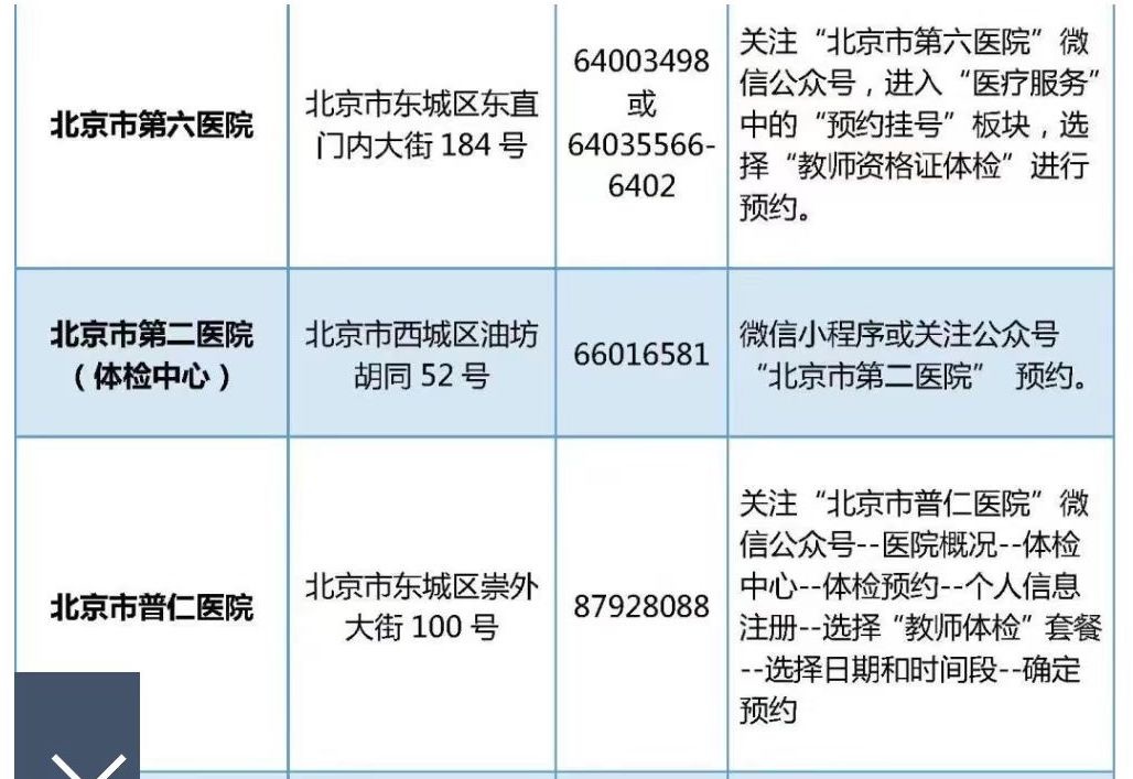 尚未進(jìn)行體檢的請自行與體檢機(jī)構(gòu)聯(lián)系完成體檢。北京市體檢中心將于3月中下旬在豐臺部、航天橋門診部和馬甸部舉行多場教師資格認(rèn)定體檢專場。具體時間安排可聯(lián)系相應(yīng)機(jī)構(gòu)咨詢。