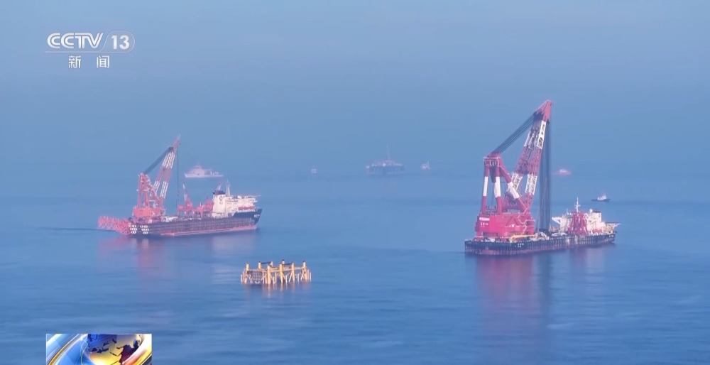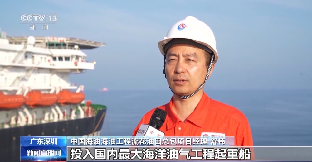 總臺央視記者 古峻嶺:在“?;枴焙I习惭b作業(yè)現(xiàn)場,經(jīng)過16個(gè)小時(shí)的連續(xù)施工作業(yè),“?;枴币呀?jīng)由昨天滑移下水時(shí)的橫向漂浮狀態(tài),變?yōu)橹绷顟B(tài),它高達(dá)338米的龐大身軀,已經(jīng)穩(wěn)穩(wěn)站立在了324米深的海床之上,僅有10余米的部分露出水面,接下來工作人員將以它為基礎(chǔ),建設(shè)安裝一座萬噸級海上鉆井平臺。未來它將在臺風(fēng)和惡劣海況的輪番考驗(yàn)下,在這里穩(wěn)穩(wěn)矗立30年,源源不斷地將深海油氣輸送到千家萬戶,為保障國家能源安全提供堅(jiān)強(qiáng)支撐。
