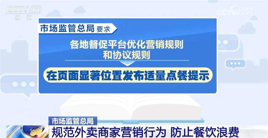 市場(chǎng)監(jiān)管總局要求各地督促平臺(tái)優(yōu)化營(yíng)銷(xiāo)規(guī)則和協(xié)議規(guī)則,在頁(yè)面顯著位置發(fā)布適量點(diǎn)餐提示;鼓勵(lì)平臺(tái)健全激勵(lì)機(jī)制,推動(dòng)商家開(kāi)發(fā)、提供、推廣小份餐品,合理設(shè)置餐品起送價(jià)格,優(yōu)化滿減湊單機(jī)制,不將主食納入滿減優(yōu)惠展示范圍,鼓勵(lì)使用食安封簽。線上線下、同頻同步開(kāi)展防止餐飲浪費(fèi)與食品安全監(jiān)督檢查,持續(xù)開(kāi)展“隨機(jī)查餐廳”行動(dòng)。對(duì)造成明顯浪費(fèi)、嚴(yán)重浪費(fèi)且拒不改正的,依法嚴(yán)厲處罰并公開(kāi)曝光。
