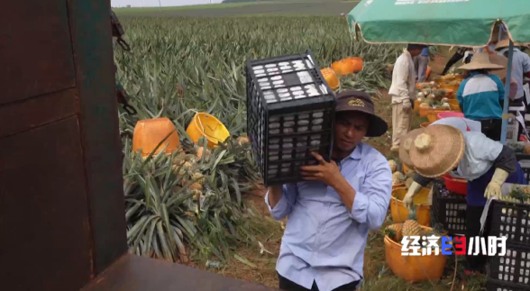 種植大戶朱學(xué)帝家的110畝菠蘿依次成熟,這天收割的5萬斤菠蘿要在太陽下山前發(fā)往甘肅蘭州。為了搶工,工人們從早上6點鐘干到下午四五點鐘,雖然很累,但是豐產(chǎn)不愁賣的紅火局面還是讓他們心里樂開了花。