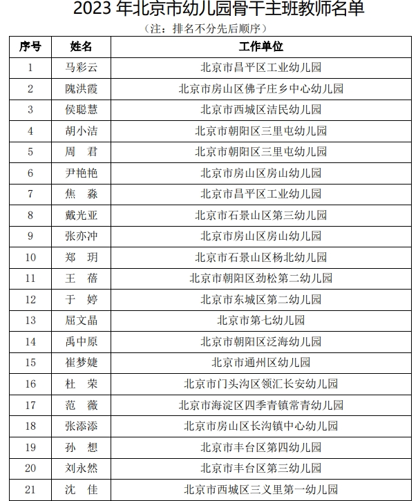 2023年北京市幼兒園骨干班主班教師部分名單(圖源:北京市教委官方網(wǎng)站截圖)