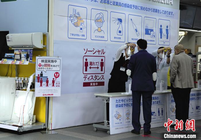 當(dāng)?shù)貢r間5月4日,日本東京某商店對進店顧客進行體溫檢測。
