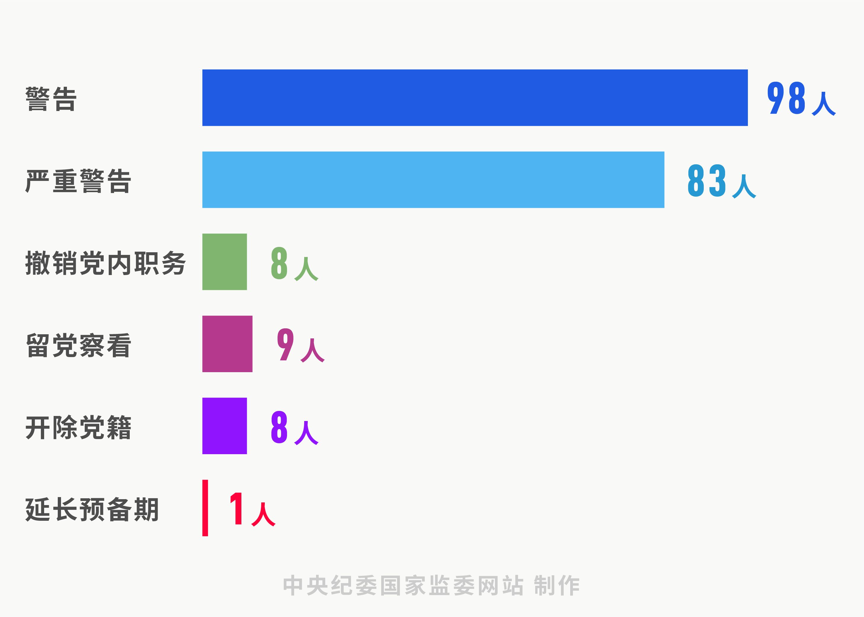 分析處分類型,受到黨紀(jì)處分的共計(jì)207人,其中,警告98人,嚴(yán)重警告83人,撤銷黨內(nèi)職務(wù)8人,留黨察看9人,開除黨籍8人,延長預(yù)備期1人;受到政務(wù)處分的共計(jì)42人,其中33人同時(shí)受到黨紀(jì)處分;12人受到誡勉談話、談話提醒、調(diào)離崗位等處理。運(yùn)用第一、二種形態(tài)處理人數(shù),占處理總?cè)藬?shù)的92%。用足用好“四種形態(tài)”,咬耳扯袖、紅臉出汗已成常態(tài),監(jiān)督執(zhí)紀(jì)更加精準(zhǔn),使更多干部受到警醒,體現(xiàn)的是嚴(yán)管和厚愛結(jié)合。