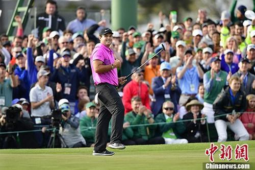 當(dāng)?shù)貢r(shí)間4月8日,總獎(jiǎng)金1100萬(wàn)美元的第82屆美國(guó)大師賽完成最后一輪賽事。第五次參加美國(guó)大師賽的帕特里克·里德(PatrickReed)頂住壓力,四輪過(guò)后以總成績(jī)273桿獲得美國(guó)大師賽冠軍,披上榮耀綠夾克。中新社發(fā) Scott K. Brown 攝