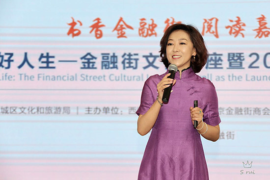 金融街街道辦事處主任徐建生,西城區(qū)文化與旅游局工會主席王來明,金融街商會秘書長、金融街書局執(zhí)行董事兼總經(jīng)理沈宏昌,中非產(chǎn)能合作基金綜合行政總監(jiān)詹旭,北京農(nóng)商銀行總行機關(guān)工會主席毛冉輝,北京百萬莊圖書大廈有限公司常務(wù)副總經(jīng)理陳強,中國少年兒童新聞出版總社《中國兒童報》副主編高慧月,北京讀書形象大使、北京金牌閱讀推廣人宸冰老師等來自近50家金融機構(gòu)及大型企業(yè)集團(tuán)的近100多位閱讀愛好者到場參加了啟動儀式。隨后,北京讀書形象大使、北京金牌閱讀推廣人宸冰為現(xiàn)場嘉賓做了“閱讀成就美好人生”講座。