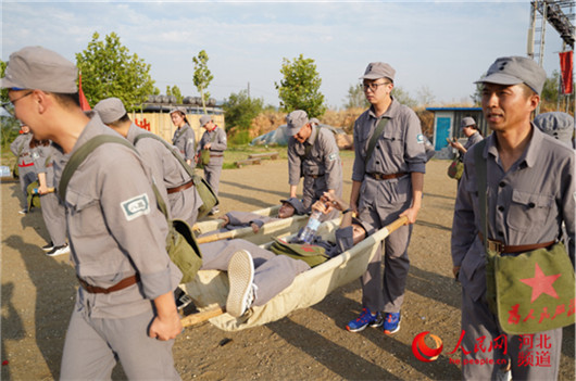 參觀結束后,學員推起獨輪車、挑起扁擔,將“軍糧”送往抗戰(zhàn)一線。耳畔響起的是陳毅元帥曾說:“淮海戰(zhàn)役的勝利是老百姓用小車推出來的”。抬起受傷的“戰(zhàn)友”送往“后方”救治。一系列有感染力和實操性的軍事化體驗教學,讓黨性教育更“走心”。