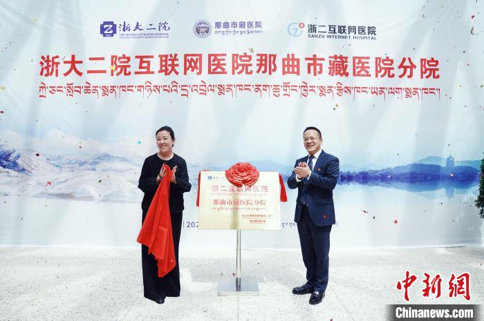 浙大二院互聯(lián)網(wǎng)醫(yī)院那曲市藏醫(yī)院分院揭牌現(xiàn)場(chǎng)。浙大二院供圖