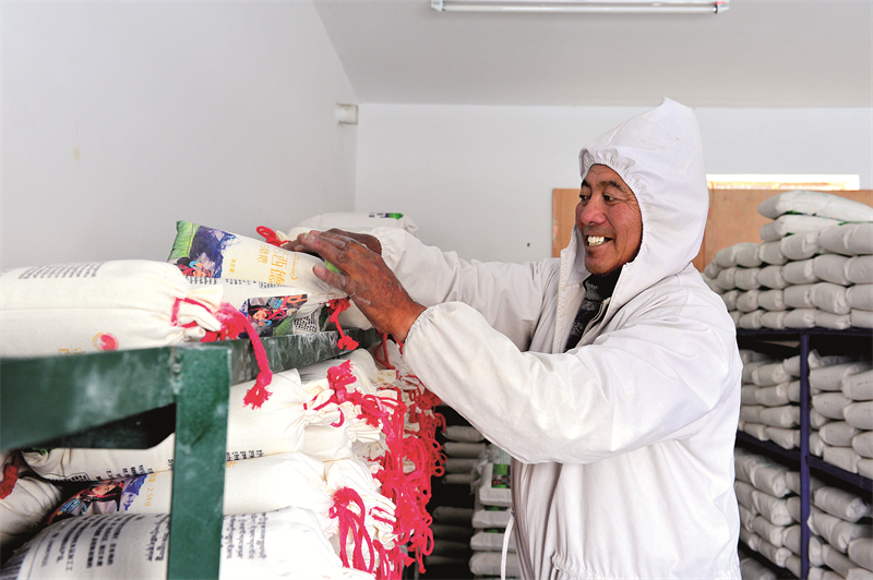 如今,在西德稞原地食品有限公司的帶動下,久美拉姆家種的青稞根本不愁銷路。2021年,公司以每畝170斤、一斤2.5元的價格對全村青稞進行統(tǒng)一收購,每斤收購價高于市場價0.5元。同時,在村委會的統(tǒng)一安排下,久美拉姆每個月會去公司上幾天班,除了工資外,年底還能享受到公司的分紅?!肮久磕贻喠靼才糯迕袂皝韯?wù)工,累計安排村民235人次,實現(xiàn)勞務(wù)創(chuàng)收33萬元,人均增收1000元左右。”旦增頓珠介紹,在公司帶動下,普蘭全縣推廣種植白青稞3100余畝,參與群眾達(dá)200多戶,實現(xiàn)群眾增收100萬元,脫貧戶實現(xiàn)種植收入30多萬元。近年來,隨著西德稞原地食品有限公司不斷發(fā)展壯大,西德村群眾的致富途徑日益寬廣,步入了種植增收、務(wù)工增收、分紅增收等多種增收方式鋪就的康莊大道,形成了以產(chǎn)業(yè)為支撐的長效增收機制。