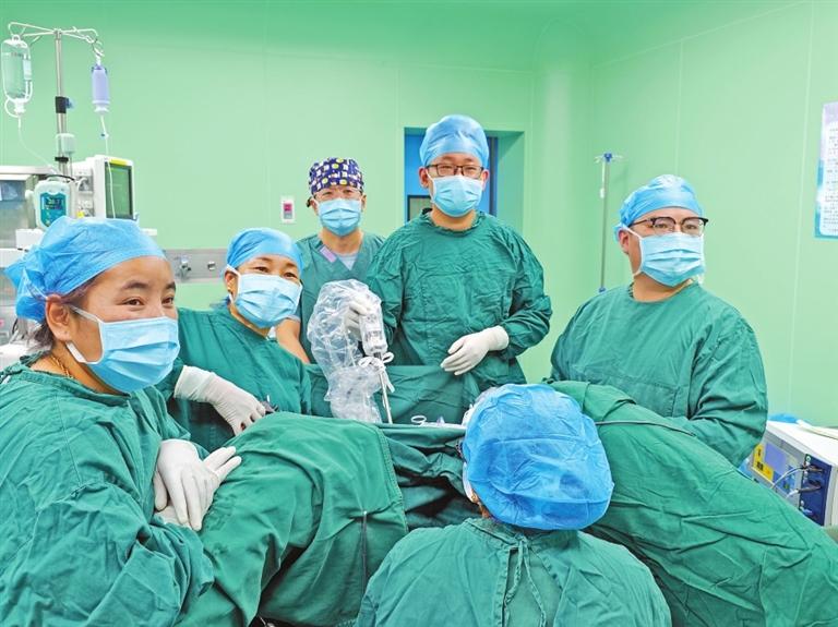 上海援藏醫(yī)療隊專家、日喀則市人民醫(yī)院婦科主任隋孟松帶領本地婦科醫(yī)生成功開展全市首例腹腔鏡下全子宮切除術。