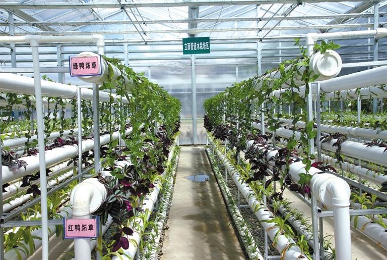 上海援建的江孜縣紅河谷農業(yè)科技示范園區(qū)內的立面管道水栽培區(qū)。
