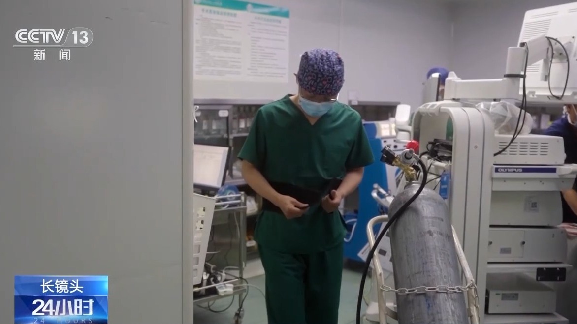 結(jié)束查房后,徐海峰馬不停蹄來(lái)到了手術(shù)室,下午,有一臺(tái)腹腔鏡手術(shù)由他主刀。