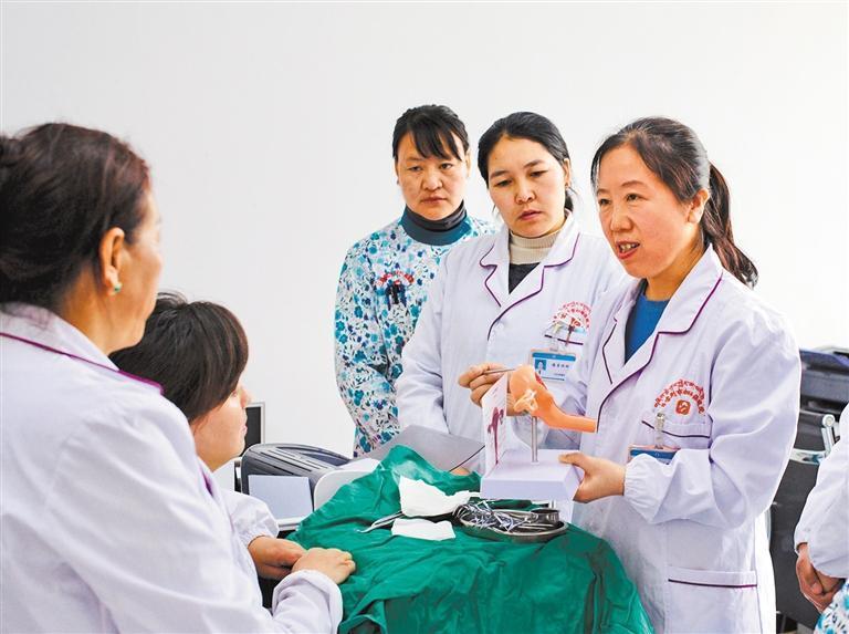 4月17日,山東援藏醫(yī)療專家、日喀則市婦幼保健院婦女保健部主任孔艷(右一)在現(xiàn)場帶教。在山東援藏的幫扶下,該院成功創(chuàng)建二甲醫(yī)院。經(jīng)濟日報記者 袁勇 攝