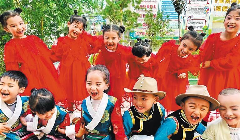 2022年6月1日,孩子們在山東援建的日喀則市齊魯幼兒園歡度兒童節(jié)。經(jīng)濟日報記者 袁勇 攝