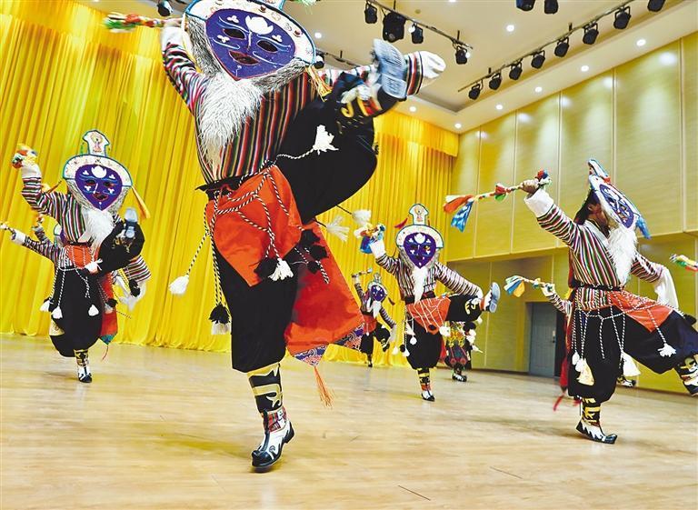 9月13日,日喀則市昂仁縣民間藝術團演員在淄博援建的迥巴藏戲國家級非物質文化遺產(chǎn)保護中心演出。經(jīng)濟日報記者 袁勇 攝