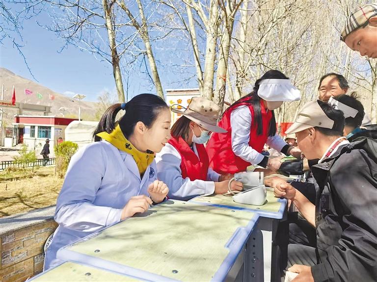 圖為北京市門頭溝區(qū)援藏醫(yī)療隊(duì)正在古榮鎮(zhèn)開展義診活動。本報(bào)記者 盧文靜 攝