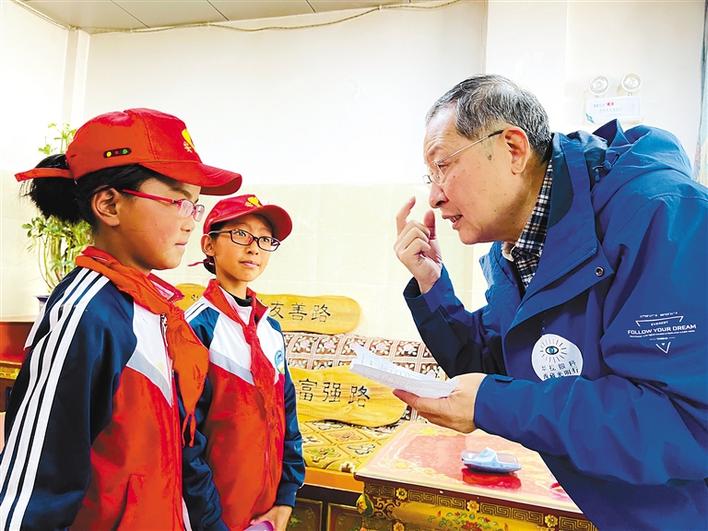 圖為濟(jì)南華視眼科醫(yī)院院長王利華為白朗縣小學(xué)生進(jìn)行斜視弱視篩查。記者 陳林 攝