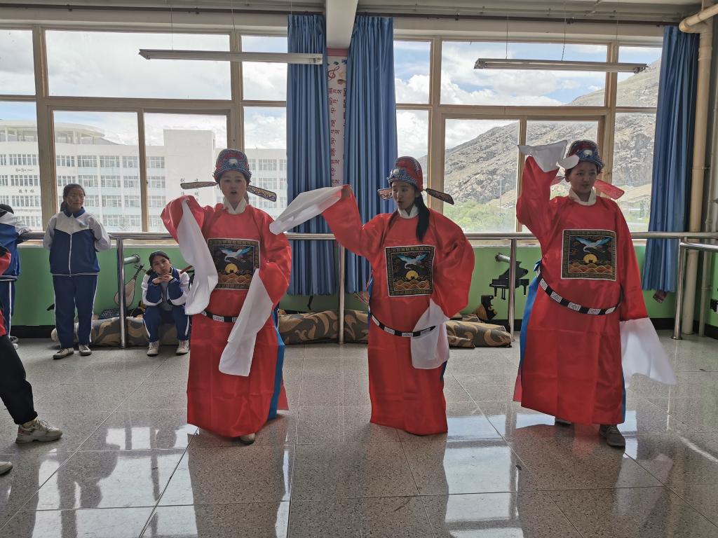 幾天相處下來,她看到藏族孩子能歌善舞的天性,便主動把家鄉(xiāng)的黃梅戲表演給學(xué)生。隨著學(xué)生對黃梅戲愈發(fā)好奇,金慧琳組建了全區(qū)首個藏漢雙語黃梅戲?qū)W生社團,并以黃梅戲代表性曲目《女駙馬》為藍本,以藏式歌舞為表現(xiàn)形式,進行創(chuàng)造性轉(zhuǎn)化和創(chuàng)新性發(fā)展。