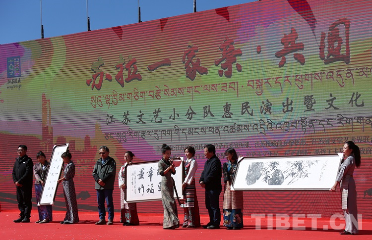 圖為江蘇省文聯文藝小分隊走進西藏自治區(qū)拉薩市墨竹工卡縣,開展“蘇拉一家親 共圓復興夢”惠民演出暨文化交流活動