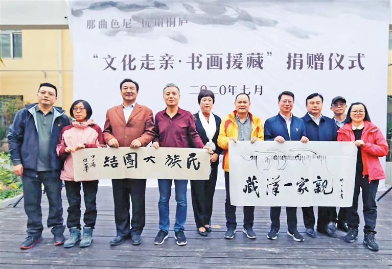 圖為2020年7月,那曲市色尼區(qū)“文化走親·書畫援藏”捐贈儀式(資料圖片)。 記者 謝偉 攝