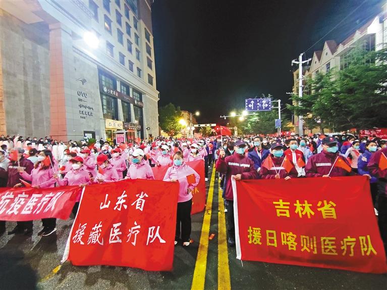 血脈相連、共克時(shí)艱。在日喀則市抗擊新冠肺炎疫情的緊要關(guān)頭,山東省委、省政府和吉林省委、省政府第一時(shí)間組織支援抗疫醫(yī)療隊(duì),馳援日喀則。全體醫(yī)療隊(duì)隊(duì)員響應(yīng)組織號(hào)召,主動(dòng)請(qǐng)纓、逆行出征,帶著山東、吉林人民的深情厚誼,以生命守護(hù)生命、以大愛(ài)砥礪仁心,苦戰(zhàn)鏖戰(zhàn)40多個(gè)日日夜夜,為日喀則奪取抗擊新冠肺炎疫情全面勝利作出了突出貢獻(xiàn)。