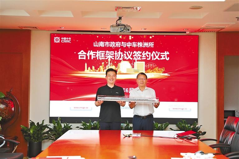 山南市政府與中車株洲所簽署合作框架協(xié)議現(xiàn)場。