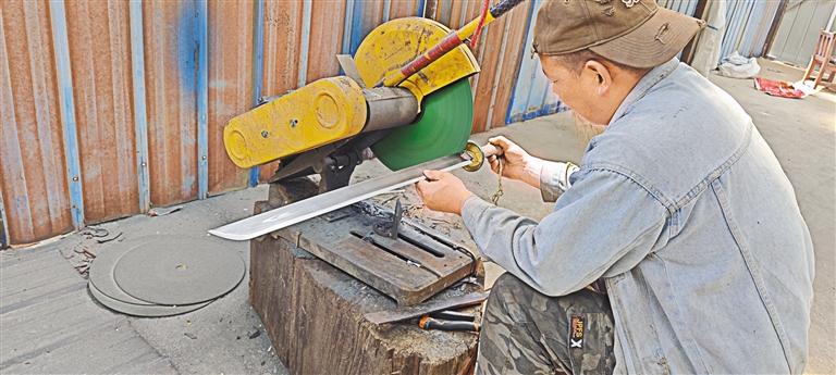 圖為打磨藏刀。