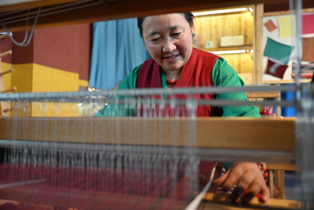 走進江孜縣阿佳格桑氆氌農(nóng)民專業(yè)合作社,織機“咔嗒”作響,氆氌的紋理在手工藝人的手中逐漸顯現(xiàn),她們用自己的雙手編織出了更加美好的未來。