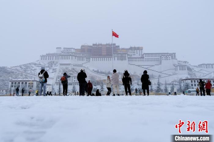 資料圖為2024年1月18日,拉薩迎來降雪天氣,游客在拉薩布達(dá)拉宮廣場合影留念。江飛波 攝