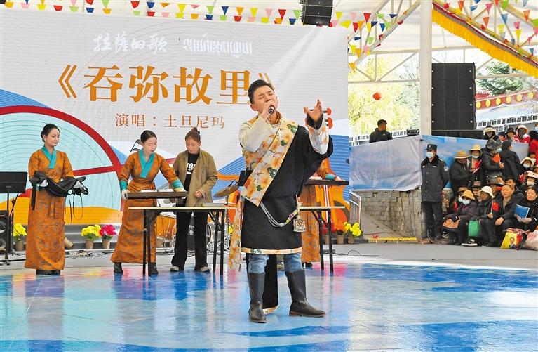 圖為歌手演唱歌曲《吞彌故里》。記者 索朗旺久 攝
