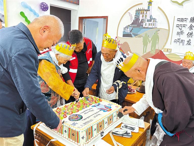 乃東街道開展“溫馨陪伴,愛滿重陽”活動(dòng),給社區(qū)老人過生日。