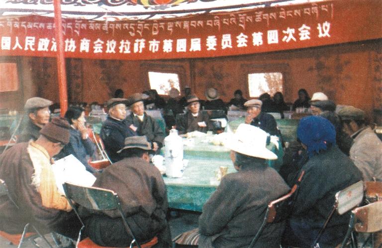 圖為1986年10月,拉薩市政協(xié)四屆四次會(huì)議上委員正在分組討論。