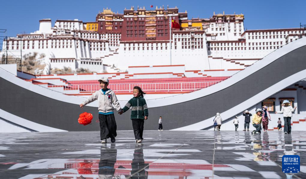 2月2日,孩子們?cè)诓歼_(dá)拉宮廣場(chǎng)玩耍。新華社記者 丁增尼達(dá) 攝