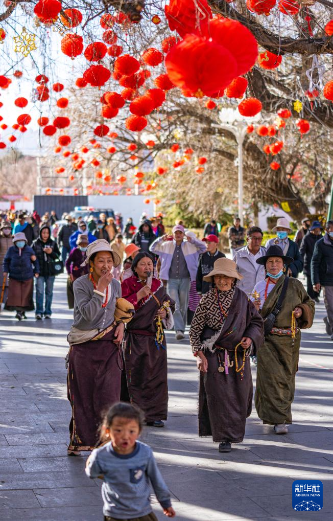 新春佳節(jié)期間,拉薩市在城區(qū)布置了許多春節(jié)裝飾,并開(kāi)展豐富多彩的文娛活動(dòng)。當(dāng)?shù)厝罕姾陀慰吐健叭展庵恰?,感受濃濃年味?/p>