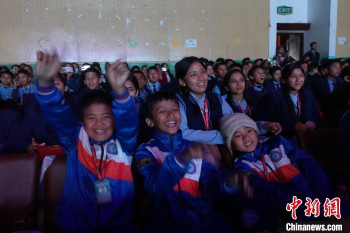 2月20日,中尼跨國新春文藝晚會在尼泊爾博克拉舉行,尼泊爾學(xué)生在聽到博克拉國際機(jī)場開通首條定期國際航線時歡呼雀躍。 中新社記者 崔楠 攝
