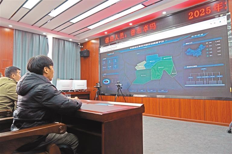 圖為噶爾縣獅泉河鎮(zhèn)綜治中心“一張網(wǎng)”調(diào)度平臺一角。記者 洛桑旦增 達珍 攝