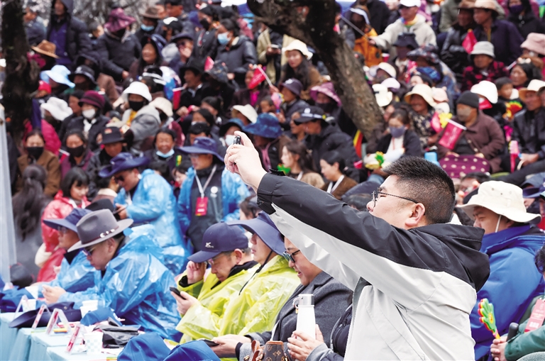 嘉賓與游客漫步俄西萬畝杏林,在如雪紛飛的杏花中拍照打卡,浸染杏花的香甜。