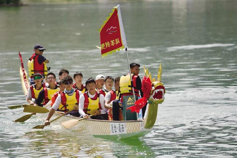 隨后,自治區(qū)體育局黨組副書記、局長尼瑪次仁宣布活動正式開始,隨著比賽開始,現(xiàn)場瞬間沸騰,鼓點聲、吶喊聲、槳葉擊水聲交織成激昂樂章,水面上的龍舟隊伍如離弦之箭破浪疾馳。選手們身著統(tǒng)一隊服,在舵手鏗鏘有力的指揮下,整齊劃一地揮槳破水,動作剛勁有力,節(jié)奏緊湊有序。