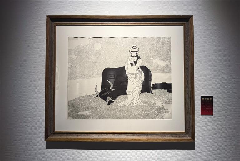 步入展廳,經(jīng)典版畫(huà)與“藏族祥巴”作品交相輝映。作為展覽的重頭戲,“藏族祥巴”融合傳統(tǒng)繪畫(huà)與版畫(huà)技法,色彩濃烈、紋樣繁復(fù),生動(dòng)展現(xiàn)藏族民俗風(fēng)情與精神內(nèi)涵;經(jīng)典版畫(huà)則以多元風(fēng)格,記錄時(shí)代變遷與地域特色,既有細(xì)膩寫(xiě)實(shí)的生活圖景,也有充滿(mǎn)張力的抽象表達(dá)。