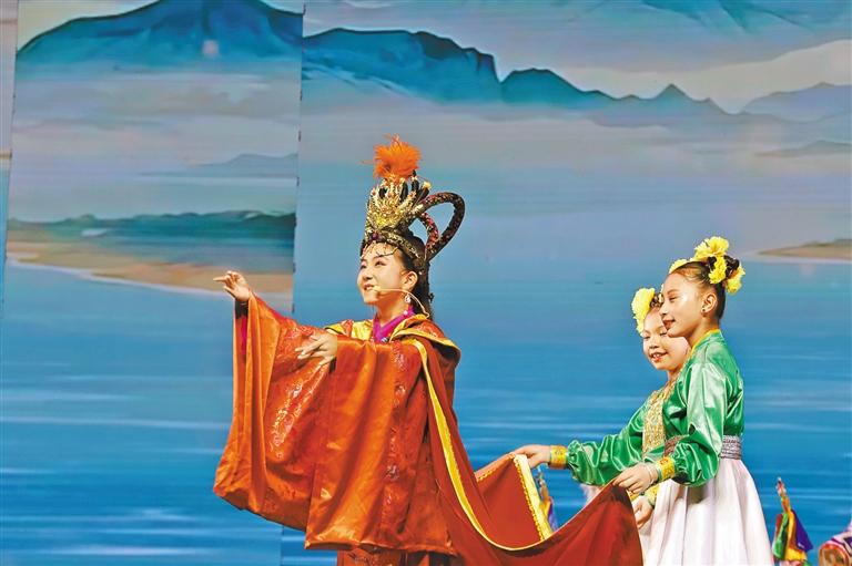 舞臺中央,12歲的其美卓嘎身著錦繡華服,以清亮唱腔和靈動演繹,將文成公主的溫婉堅毅展現(xiàn)得淋漓盡致?!爱?dāng)我穿上戲服、唱起‘漢藏情誼潔如璧’時,仿佛真的穿越到千年前的和親之路?!毖莩鼋Y(jié)束后,小姑娘眼中閃爍著興奮的光芒,“原來民族團(tuán)結(jié)的故事,就藏在這些古老而動人的戲文里?!逼涓赣H倫珠難掩自豪:“文成公主促進(jìn)了漢藏交融,女兒能表演這個節(jié)目,用藏戲詮釋民族團(tuán)結(jié),是我們?nèi)业尿湴?!?/p>